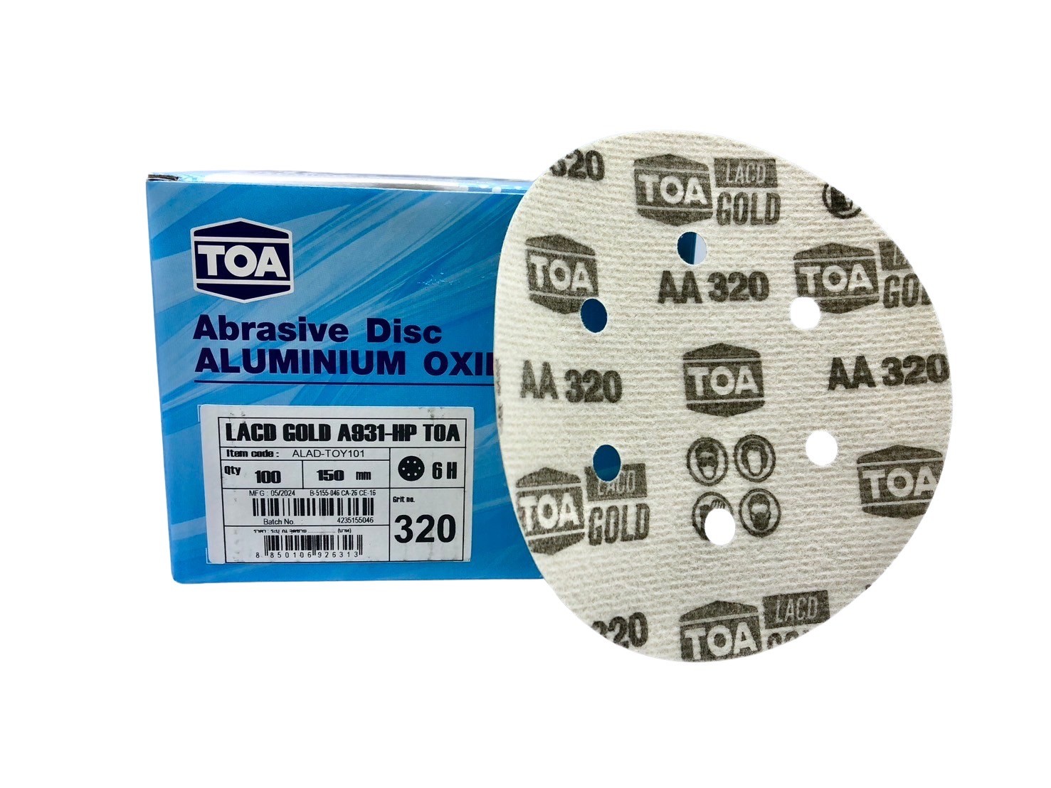 กระดาษทรายกลม หลังสักหลาด TOA เบอร์ 320 ขนาด 6 นิ้ว 6 รู LACD-GOLD